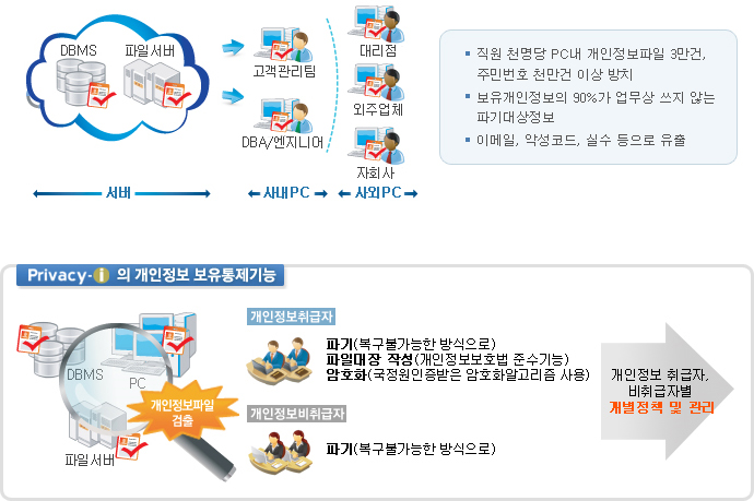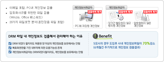 조직내 방치된 개인정보 검출, 개인정보의 최소화 달성