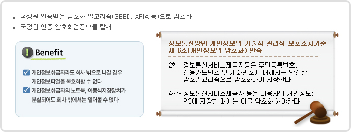 국정원 인증 받은 암호화 알고리즘으로 암호화