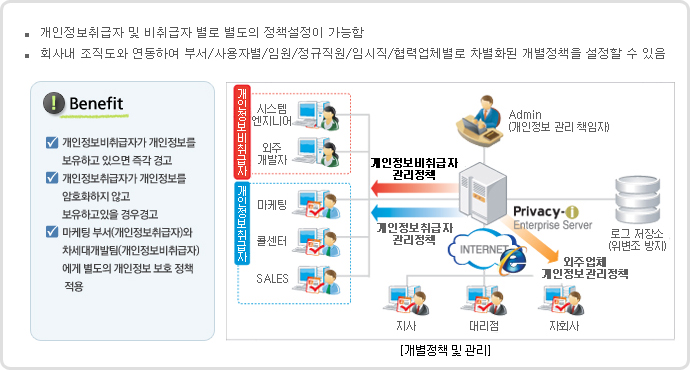 개인정보 취급자, 비취급자, 외주업체별 개별정책 관리